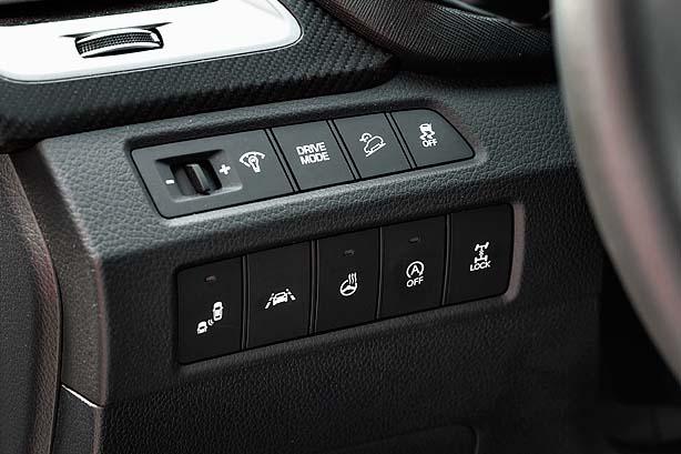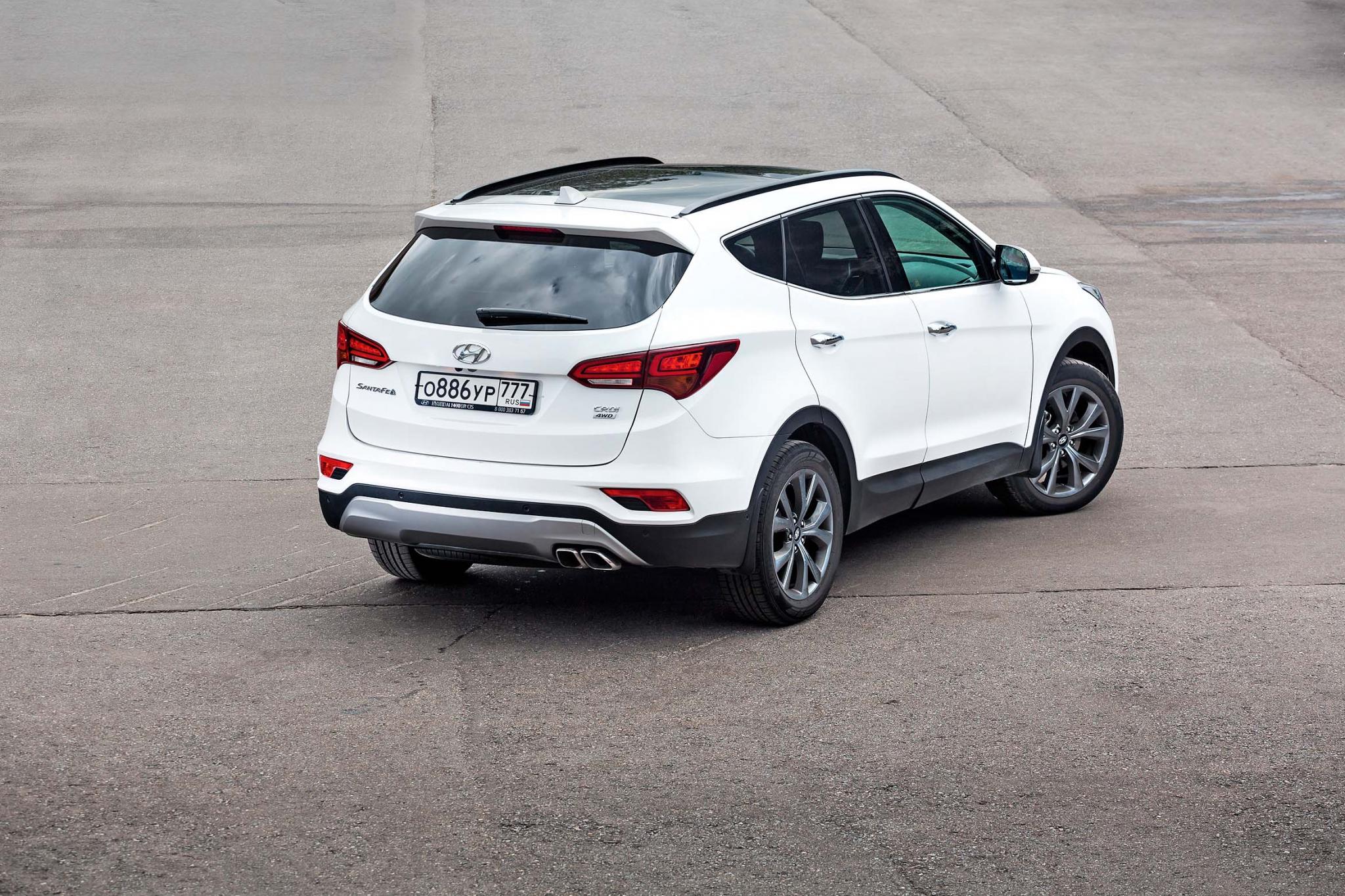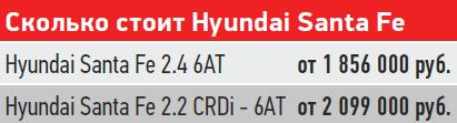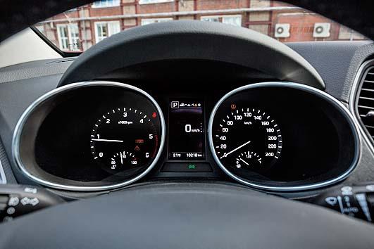 Убаюкивающие ездовые повадки Santa Fe резко контрастируют с озорным характером старшего в линейке мотора. Дизельный двигатель объемом 2,2 л наделяет Santa Fe неожиданной динамикой: расслабленная и спокойная в управлении двухтонная машина на удивление быстро разгоняется. Согласно паспортным данным благодаря 200-сильному мотору кроссовер достигает скорости в 100 км/ч за 9,6 с при старте с места и это очень похоже на правду. Под стать двигателю и тормоза, которые уверенно осаживают машину. В спортивном режиме реакция автомобиля на нажатие педали акселератора становится немного острее. Сообразно увеличивается и расход топлива – в спортрежиме он может достигать 12 л на 100 км пути. Экономный водитель сможет снизить этот показатель до 8-9 л в режиме Eco, но кроссовер при этом становится склонным к «задумчивости» при разгоне. Данный недостаток можно сгладить, приноровившись работать педалью акселератора по определенному алгоритму.