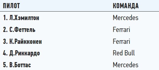 Положение в чемпионате: личный зачет пилотов