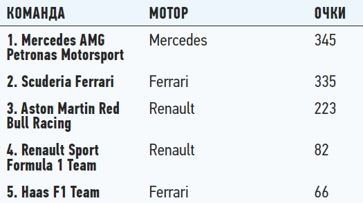Положение в чемпионате: кубок конструкторов