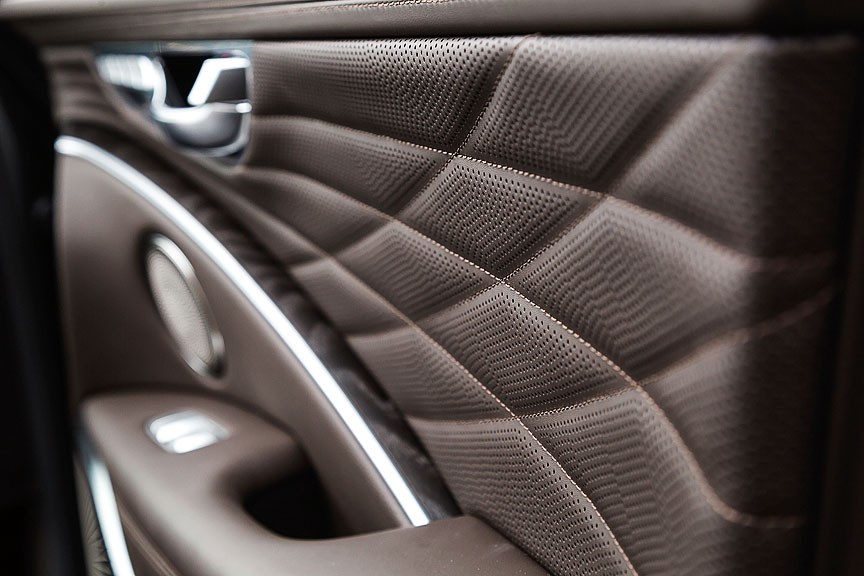 Главное место в K900 – справа сзади. Сдвинув переднее кресло до упора вперед, можно получить очень приличную площадку для ног, да и по высоте седан «не жмет». Кроме того, здесь можно расположиться полулежа, регулировки позволяют. Плавность хода – определенно лучше, чем у многих зубодробительно жестких конкурентов из числа седанов бизнес-класса. За развлечения отвечают экраны на спинках кресел. Графика четкая, интерфейс понятен. Категорически рекомендуем поездки именно на втором ряду!