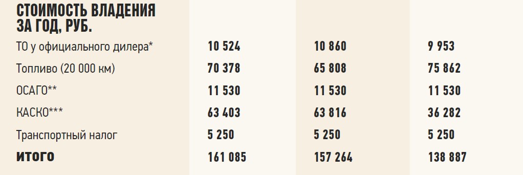 * Цены варьируются в разных дилерских центрах ** Для Москвы, при минимальных повышающих коэффициентах *** Полное покрытие, без франшизы, на примере одной страховой компании при максимальном возрасте и стаже водителя
