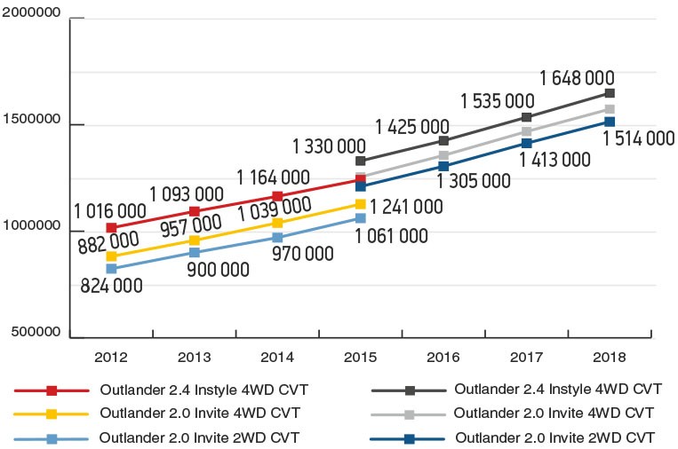 Стоимость Mitsubishi Outlander на вторичном рынке