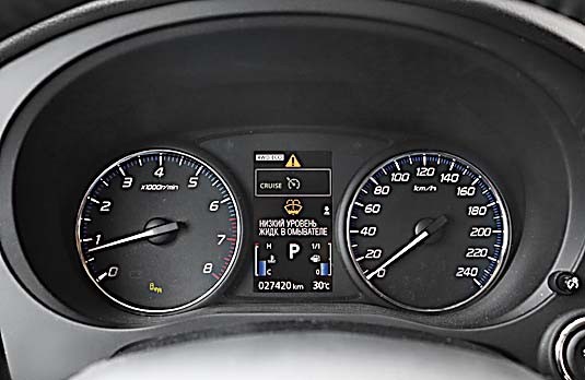 Достойная шумоизоляция в дальней дороге дает пассажирам отдохнуть, а сзади кое-кому даже удалось подремать. Разбудят резкие и эффективные тормоза. Водитель, впрочем, за это не в обиде. Как и за вспомогательные опции. Их, кстати, тут необходимый минимум – слежение за «слепыми» зонами» и предупреждение о столкновении при движении вперед или назад при парковке. А помощь при подъеме/ спуске и четыре камеры заднего вида, в том числе конфигурирующие «вид сверху» – идут приятным бонусом. Круиз-контроль ожидаемо «неактивен», ну и пусть. Зато с климатом в машине возникло несколько недопониманий. Наличие кондиционера угадывается по специфическому запаху в начале его работы. Не понравилось, что нет возможности направить весь поток воздуха на лобовое стекло, что пригодилось бы во время сильного дождя. Приходится пользоваться только автоматическим режимом обдува стекла (отдельная кнопка), а это, опять же, не всегда удобно и комфортно.