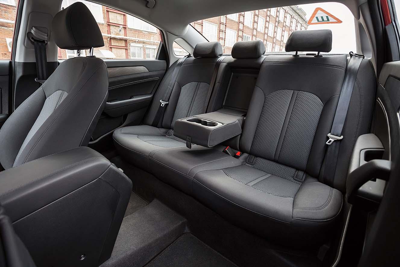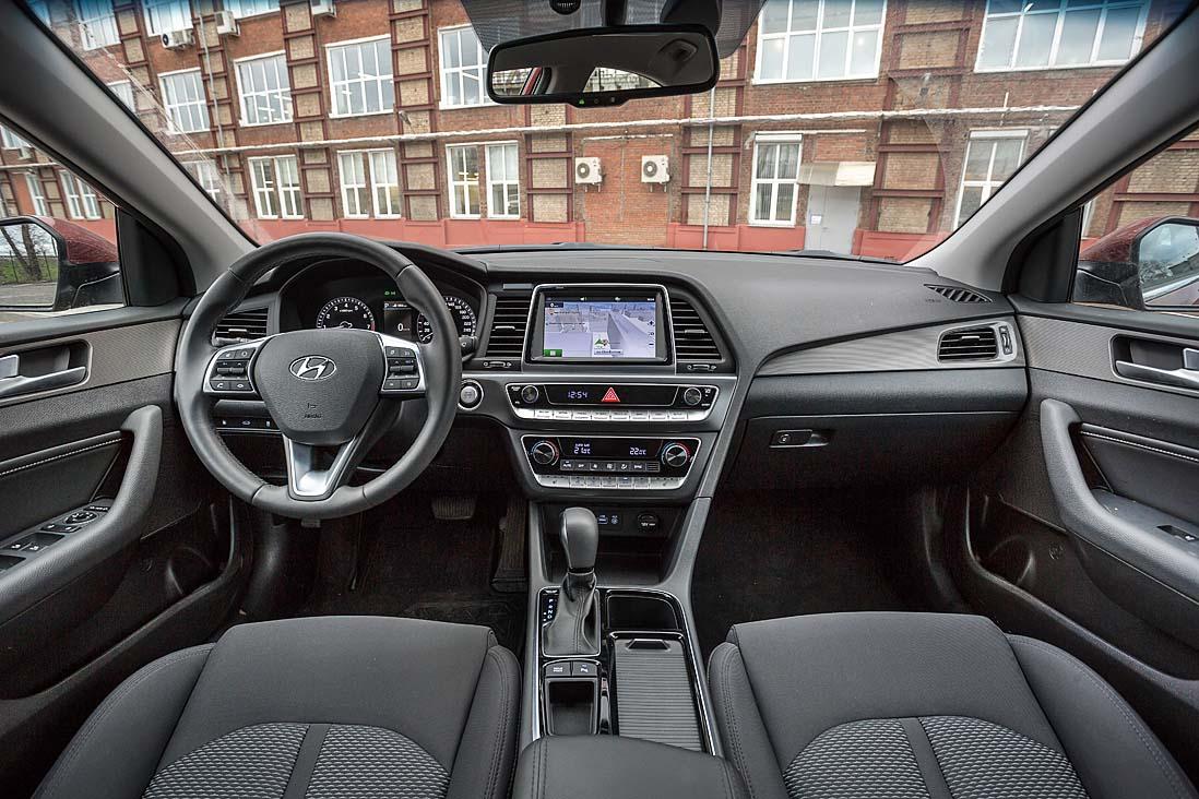 Но и корейский седан в плане организации рабочего места водителя совсем не промах. Кнопки, клавиши там, где надо. Управление вспомогательными системами выстроено логично. Мультимедиа, пусть и проще, но в целом не хуже, чем у большинства конкурентов. У кресла и рулевой колонки большие диапазоны регулировок, позволяющие легко найти удобную посадку людям разной комплекции. И выполненная с оглядкой на европейские модели обстановка, несмотря на заметную экономию на дорогих отделочных материалах – мягкий, податливый пластик, смотрится более интересно и свежо.
