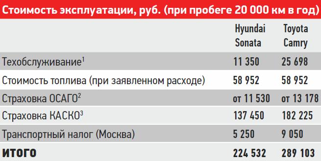 Чем же ответит Toyota? Оказывается, в ее запасе много весомых аргументов. На сегодняшний день японский седан предлагает российским покупателям три, работающих в паре с 6-диапазонной АКП, мотора: 2,0 (150 л.с.), 2,5 (181 л.с.) и 3,5 (249 л.с.) и девять комплектаций. И если мы решим выбрать из этого разнообразия что-то близкое по содержанию к «Сонате» в оснащении Style, то обнаружим, что заданным критериям поиска соответствует Camry в исполнении «Стандарт Плюс». При этом японское предложение на 15 тысяч рублей дешевле.