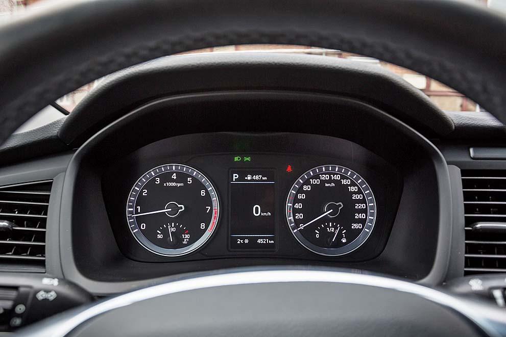 Множественные доработки платформы при создании нынешней «Сонаты» не прошли даром. Небольшие стыки и неровности на асфальте подвеска корейского седана отрабатывает исправно. Большой раскачки кузова на продольных и поперечных волнах не наблюдается. Управляемость пусть и не самая азартная, но вполне аккуратная и надежная. Заметно, что машина заточена больше на комфорт, нежели на драйв. Удобный на городских скоростях, но не самый способный помощник при обгонах на трассе, 150-сильный мотор хорошо вписывается в эту формулу. Раскручивая двигатель «до красна», получаешь от него не ожидаемую отдачу, а лишь назойливый шум. С более мощным 188-сильным агрегатом «Соната» «живее», но нельзя сказать, что разница в динамике огромна. К тому же, с 18-дюймовыми колесами корейский седан существенно жестче машины с дисками меньшего диаметра.