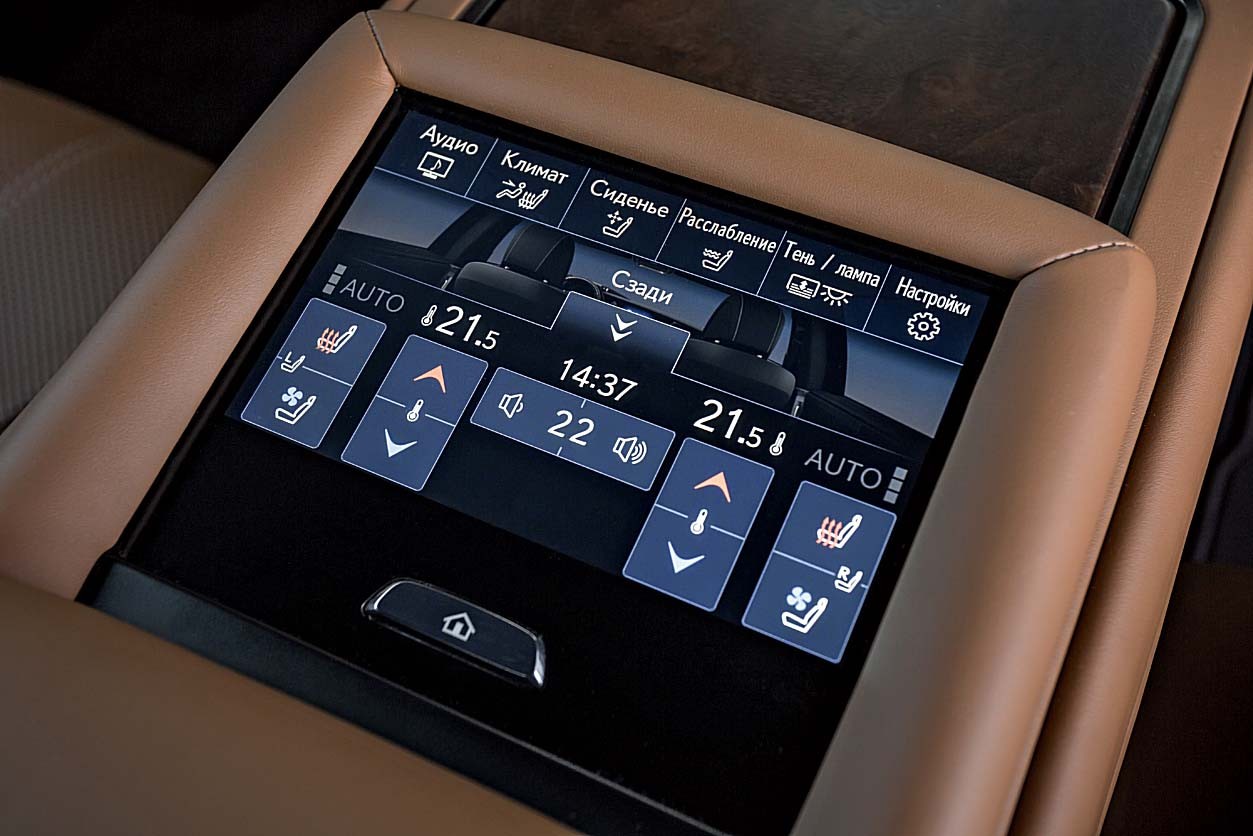 Для того, чтобы управлять медиасистемой, настройками климата и положением кресел и в том, и в другом седане предусмотрен пульт с сенсорным экраном – на Lexus он жестко закреплен в подлокотнике, а в Audi его можно извлечь из ниши. Съемными в немецком седане сделаны и индивидуальные экраны-планшеты, работающие на платформе Android.