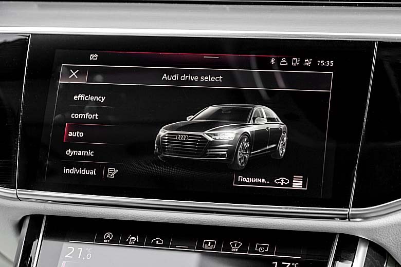 - АВТОМАТИЧЕСКАЯ 8-ступенчатая трансмиссия и полный привод quattro c несимметричным распределением крутящего момента (40:60 в пользу задней оси) – стандартное оснащение A8.