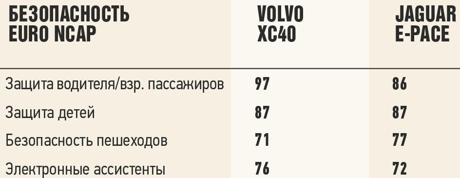 Jaguar E-Pace хоть и младший кроссовер в семействе, но демонстрирует очень зрелые повадки. Яркий, быстрый, азартный, оснащенный по последнему слову техники. Все нравится! Только цены кусаются. Когда в первый раз смотришь на Volvo XC40, кажется, что этот угловатый малыш совсем лишен темперамента. Но чем дольше общаешься с ним, тем большей симпатией к нему проникаешься. Его умение совмещать практичность и комфорт с великолепной техникой прохождения поворотов реально подкупают. Из двух я бы выбрала его.