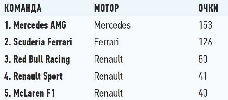 Положение в чемпионате: кубок конструкторов