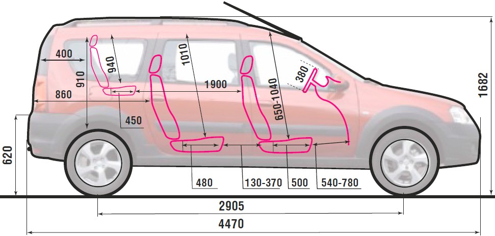 Три ряда сидений в компактном кузове – как правило, компромисс, сильно ограничивающий комфорт пассажиров «галерки». Но только не в случае с «Ларгусом». Два его складных задних кресла вполне пригодны для взрослых. Троим на среднем ряду будет даже теснее – отечественный универсал хоть и длинный, но узкий. Тем не менее, определение «7-местный» для этого автомобиля абсолютно справедливо. Однако надо понимать, если коробочка полна, то багаж придется держать в руках. Сетки на боковинах, пластиковая полка под потолком и карманы на задних распашных дверях годятся только для мелочевки.