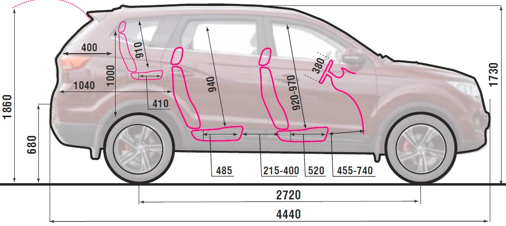 В китайской машине даже таких незатейливых приспособлений не предусмотрено, а размер креслиц чисто детский. Средний ряд просторнее и комфортнее. Жаловаться не на что. Впрочем, без уникальных особенностей здесь не обошлось. По какой-то странной логике компоновщики разместили дефлекторы системы вентиляции на потолке, аккурат за головами пассажиров. Хорошо, если из них струится тепло, но радость получить в затылок заряд холода сомнительна.