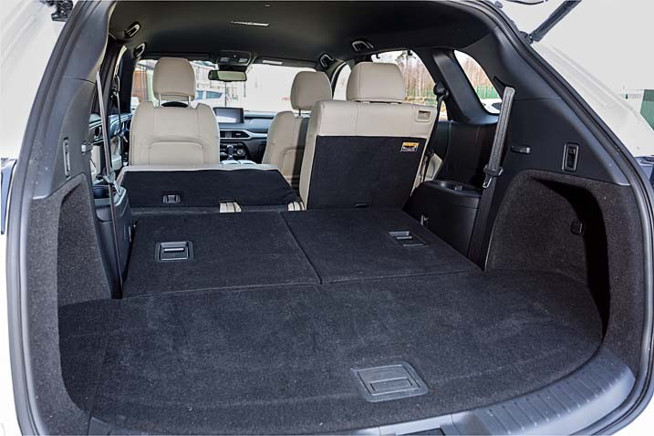 Все системы настроены помогать, не мешая. Аккуратными импульсами подруливает ассистент удержания в полосе, держась радарами за разметку. Траектория, проложенная электронным мозгом, идеально совпадает с выбранной водителем – отключить помощника рука ни разу не поднялась. Аналогичным образом – своевременно и предупредительно – тянут лямку системы экстренного торможения при движении вперед и назад, слежения за слепыми зонами и распознавания дорожных знаков. Последняя поможет здорово сэкономить на штрафах. Может ли большой семиместный автомобиль быть маневренным и лишенным тяжеловесности? Легко! В узких коридорах густо заставленных дворов кроссовер не чувствует себя пассажиром метро в час пик. Он устойчив и комфортен на ходу, для своих 231 л.с. динамичен и слушается руля аккурат в рамках представлений среднестатистического водителя. Если оголтело-хаотичным метаниям по рядам водитель предпочитает простую уверенность в совершении любого маневра – CX-9 ответит ему взаимностью. И не попросит многого взамен: средний расход топлива в городе во время теста составил 12,9 л. Среди очевидных плюсов также громадный багажник и просторный третий ряд сидений, на котором удобно будет не только детям.