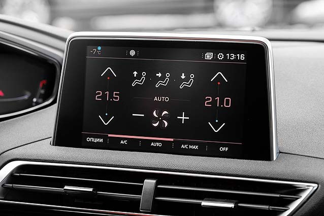 Блок клавиш, похожих на тумблеры – главная «фишка» салона 5008. В таком исполнении наделенные привычными функциями кнопки выглядят очень стильно и необычно