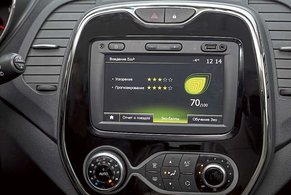 Топливные замеры проводились при отключенном полном приводе. Всего же у Kaptur три режима трансмиссии. По умолчанию кроссовер полноприводный, электроника при этом сама распределяет крутящий момент по осям в зависимости от типа покрытия и скорости. Есть здесь и блокировка, которая «раскидывает» момент поровну на передние и задние колеса. Доплатить за 4WD все-таки стоит – зимой это точно пригодится. Например, безобидный на первый взгляд парковочный карман, засыпанный снегом, чуть не стал для нашего «Каптюра» ловушкой, однако после подключения задней оси машина легко выбралась. Третий режим – передний привод, который, по идее, должен помочь в экономии топлива.