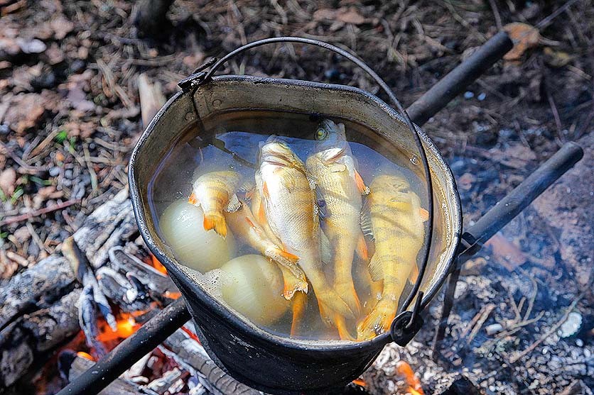 Воду, разумеется, можно без опаски пить сырой. Вернее, раньше можно было, пока туристы, чтоб их, не разжились лодочными моторами. Ну а чай или уха из местной водички – пальчики оближешь. Главное – не чистить окушков от чешуи. Исколетесь, да и вкус ухи будет уже не тот. Лично я по традиции в 3-литровом ведерке варю в течение 10 минут 15 рыбок. Затем рыбу достаю и съедаю отдельно, а уха в виде деликатеса отправляется со мной домой, чтобы удивить самых близких людей, посвященных в тайны озера Синовино...