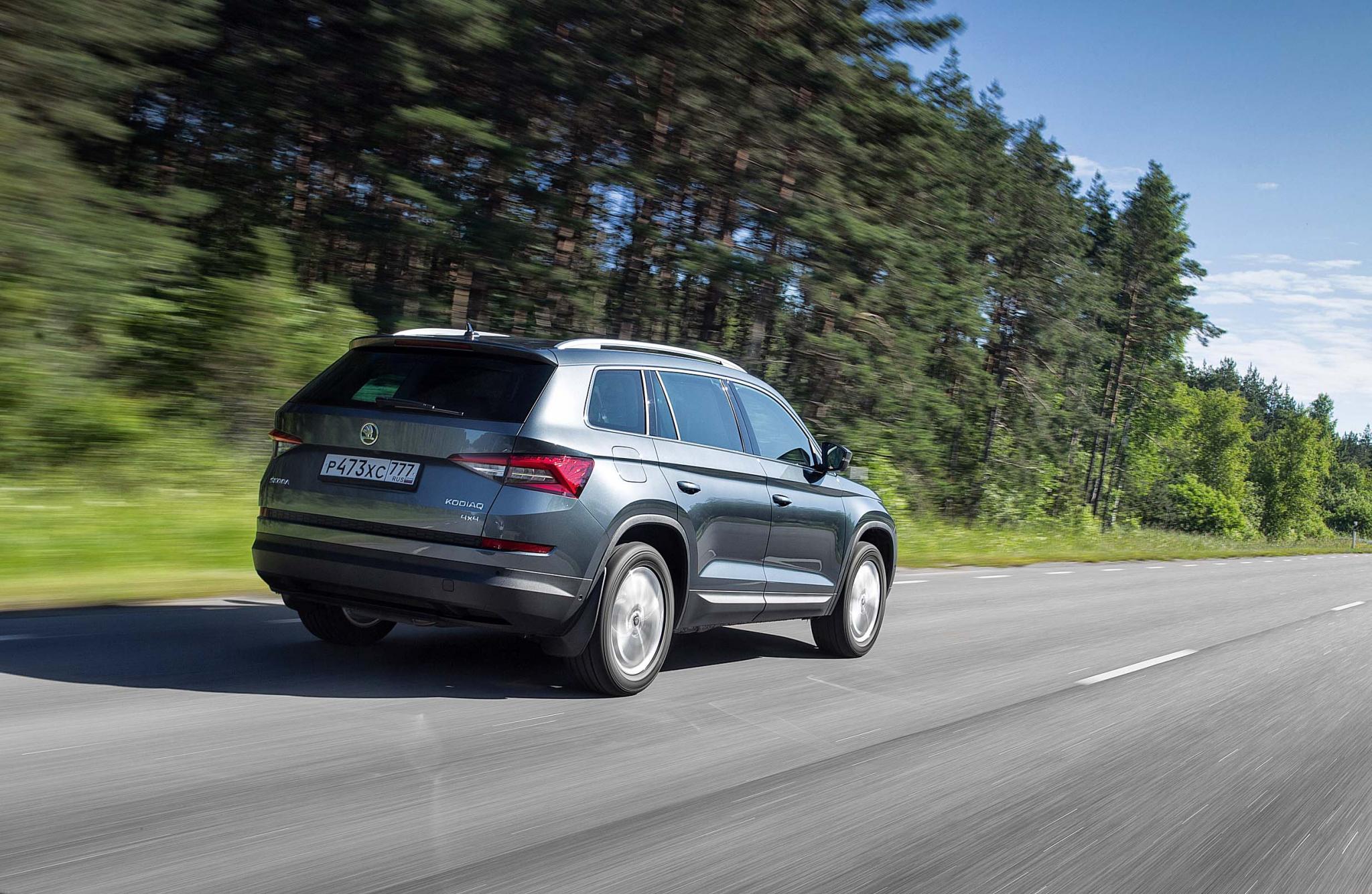 В городе запаса мощности хватает всегда. Ну, почти всегда – если водитель Kodiaq не задается целью удивить всех зрелищным стартом со светофора. Ехать со скоростью потока – не проблема, даже если все семь посадочных мест заняты, а в багажнике, объем которого при разложенном третьем ряде сидений равен всего 233 л, уместилась пара увесистых сумок. Но и за пределами города Kodiaq не промах – уверенно набирает скорость и заботливо оберегает пассажиров от раскачки и шума. Лишь при резких ускорениях, когда, например, нужно обойти тихохода по встречной полосе, заметно, что такие нагрузки даются автомобилю не совсем просто.