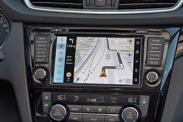 Безусловно, главный плюс новой оболочки – наличие «Яндекс.Авто», одного из самых популярных приложений среди российских водителей. Покупать для телефона крепление с присоской, вешать аппарат на ветровое стекло и каждую минуту поглядывать на крохотный дисплей «мобильника» больше не нужно. Привычный многим навигатор при переносе на автомобильное «железо» полностью сохранил свой функционал. Соответственно, он умеет не только прокладывать кратчайшие маршруты в объезд пробок, но и показывать эти самые пробки, предупреждать о камерах контроля скорости и разметки, а также подскажет, в каком ряду впереди произошла авария.