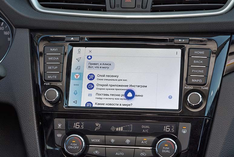 С помощью платформы «Яндекс.Авто» мультимедийной системой можно управлять голосом. К примеру, попросить проложить маршрут до точки назначения, переключить песню, открыть приложение или же найти информацию в Интернете. Можно и просто поболтать на свободные темы с Алисой, виртуальным помощником от «Яндекса», который способен обучаться в процессе общения с человеком благодаря применению технологий машинного обучения и нейронных сетей.