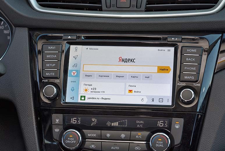 Для браузера предусмотрена отдельная иконка, и неспроста – это самое что ни на есть полноценное средство серфинга в Интернете. Выглядит «Яндекс.Авто» до боли знакомо, особенно для тех, кто часто пользуется данным поисковиком. На главной странице можно и новости почитать, и с кинопремьерами ознакомиться – словом, весь привычный функционал на месте. Единственный минус – при вводе текста в поисковую строку система ощутимо подтормаживает.