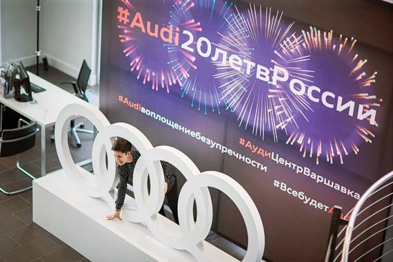 АУДИ ЦЕНТР ВАРШАВКА масштабно отметил двадцатилетие присутствия бренда Audi в России. Для поклонников Audi был организован праздник с музыкальным шоу, розыгрышем призов, а также презентацией двадцати роскошных автомобилей Audi.