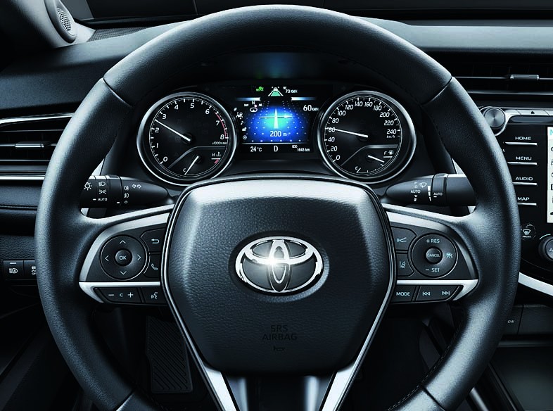 В основе седана нового поколения лежит модульная архитектура TNGA, в которой широко применяются высокопрочные стали. Для того, чтобы сделать характер Camry более драйверским, специалисты японской компании основательно поработали над передней частью каркаса кузова. Рост жесткости на кручение дают распорка между точками крепления стоек дополнительные усилители. Точки крепления заднего подрамника усилены, кроме того, им достались дополнительные кронштейны. Электроусилитель руля смонтирован на рейке, у передней подвески McPherson оптимизирована кинематика, сзади – новая «многорычажка» с разнесенными пружинами и амортизаторами. Рулевой механизм Camry сделан более «острым» – от упора до упора «баранка» описывает примерно на полоборота меньше, чем прежде. А на ходу она наливается ощутимым усилием в зависимости от угла поворота.