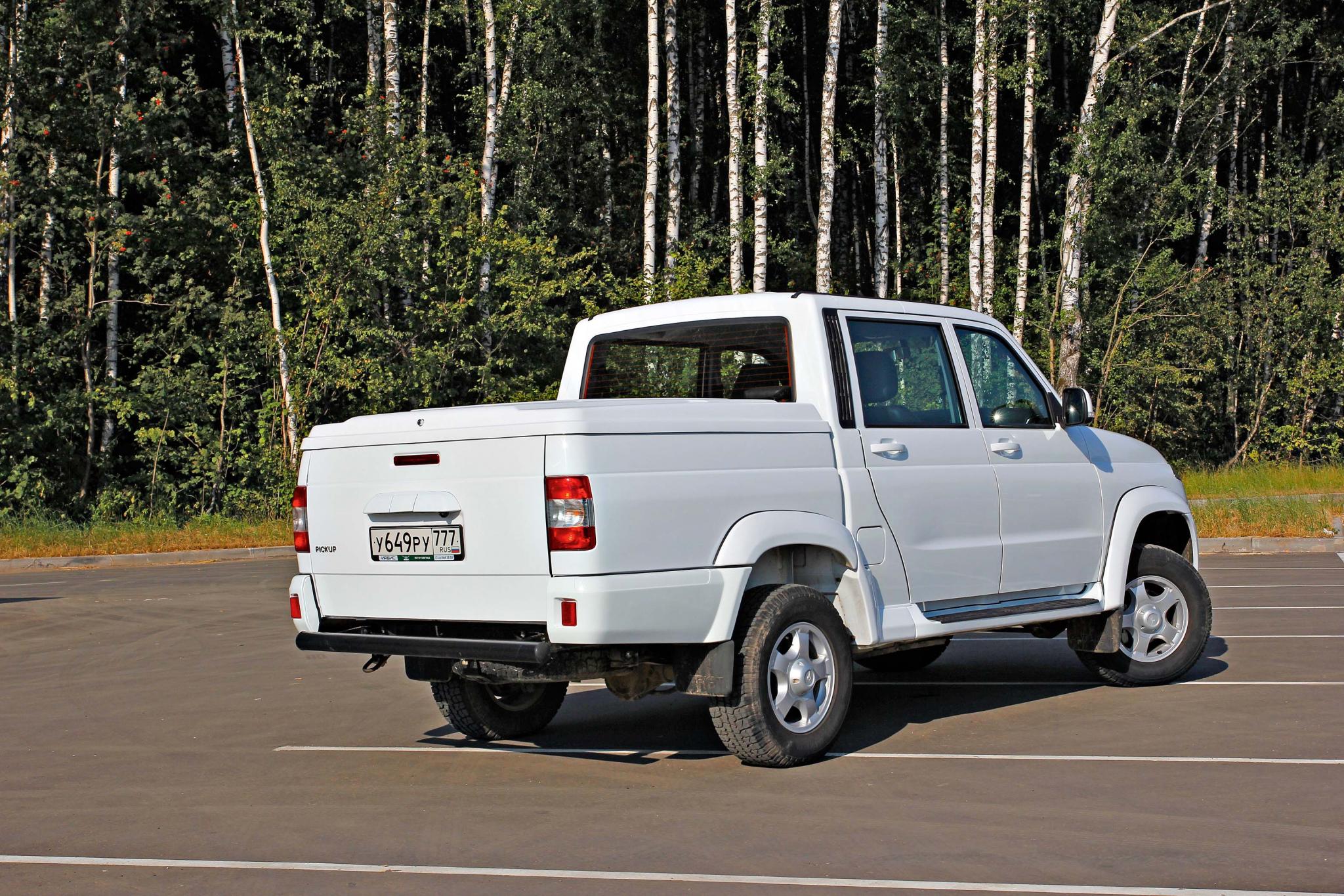 По сравнению с пятидверным Патриотом, пассажиры автомобиля УАЗ Пикап никак не ущемлены в пространстве – жизненного пространства для них отмерено ровно столько же. Грузовой отсек с высокими бортами и защитным пластиковым покрытием радует вместительностью и наличием фирменной жесткой крышки, запирающейся на замок тем же ключом, что используется для дверей и замка зажигания. Вот только одну из двух запирающих вилок, входящих в зацепление со скобами на кузове, тестовый автомобиль с пробегом менее 8 000 км уже утратил...