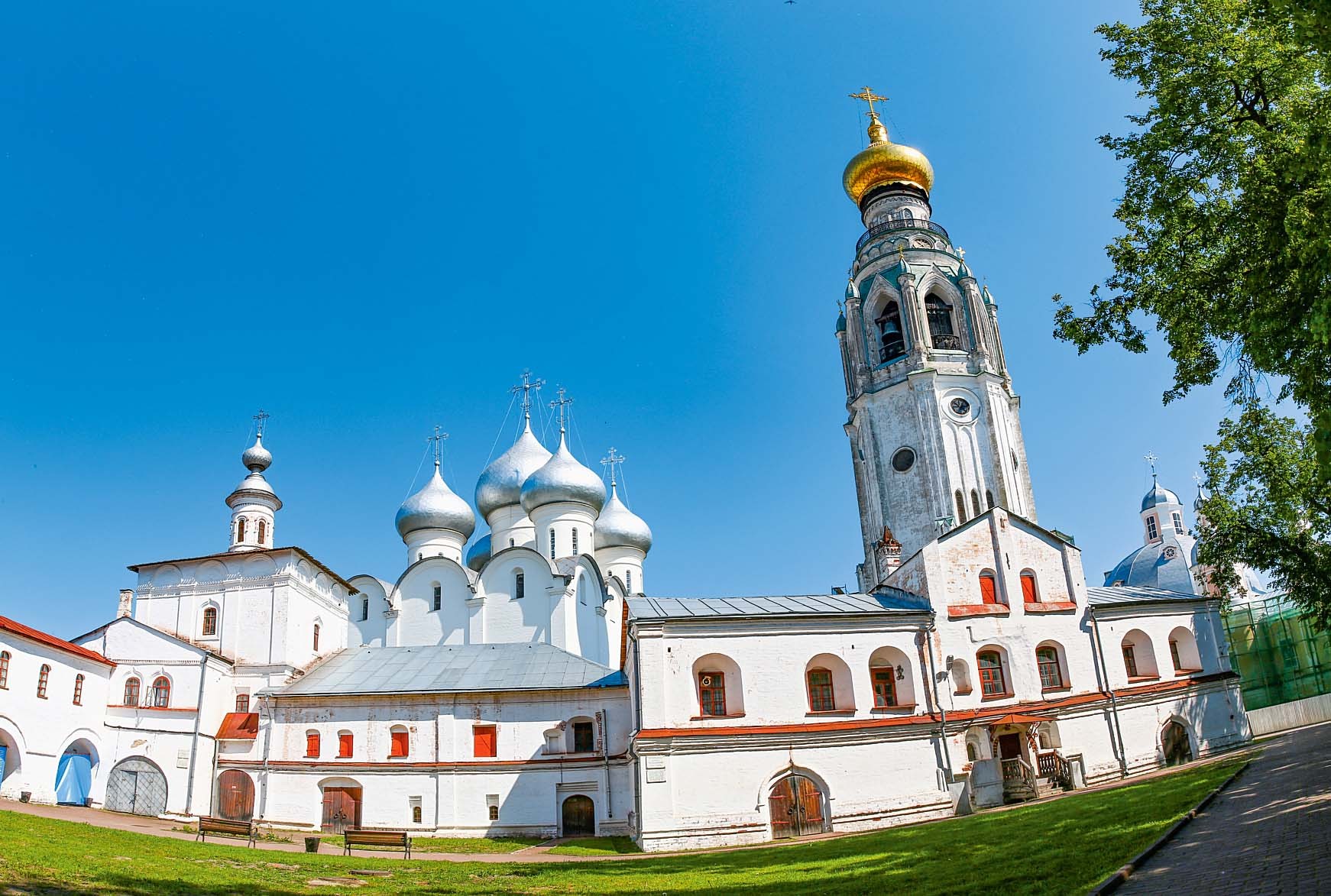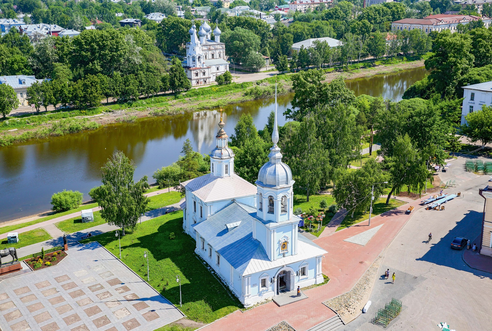 На территории кремля сохранились комплекс Архиерейского двора, Софийский собор, колокольня, Воскресенский собор, Крестовоздвиженская церковь. На колокольне открыта смотровая площадка. Вход – 200 рублей. С высоты птичьего полета можно осмотреть всю Вологду на 360 градусов. Подняться сюда однозначно стоит – красивый вид и приятные впечатления гарантированы. Дальше прогуляйтесь до Торговой площади, а за ней – до площади Революции.