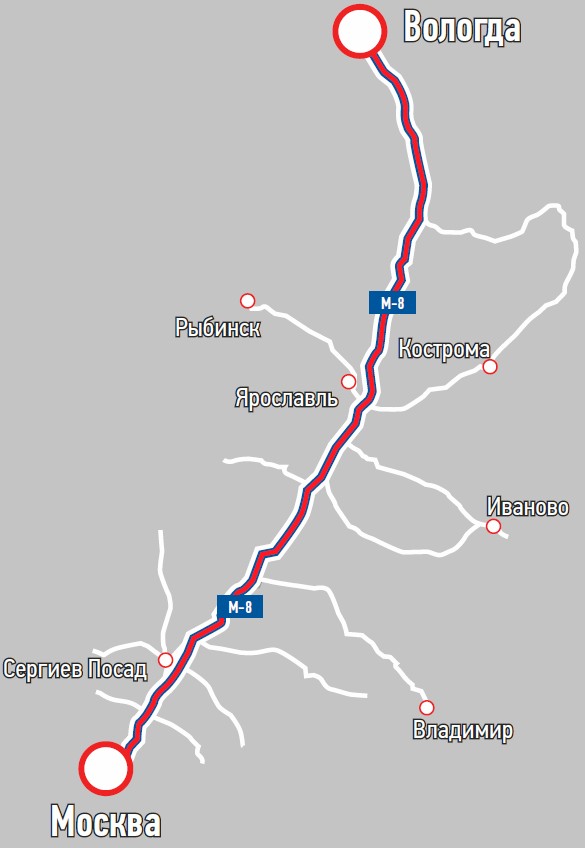 Доехать из Москвы до Вологды можно по автодороге М-8 «Холмогоры». Расстояние – 500 км от МКАД. Мы добрались с одной небольшой остановкой за 7 часов. Трасса в хорошем состоянии. АЗС множество, а примерно в 45 км от Вологды даже есть «Лукойл» с 100-м бензином. Маршрут проходит через Переславль-Залесский, Ростов и Ярославль. Тут по вашему желанию: можете поехать через эти города, сделать остановку и погулять и по ним, а можете выбрать объездные дороги.