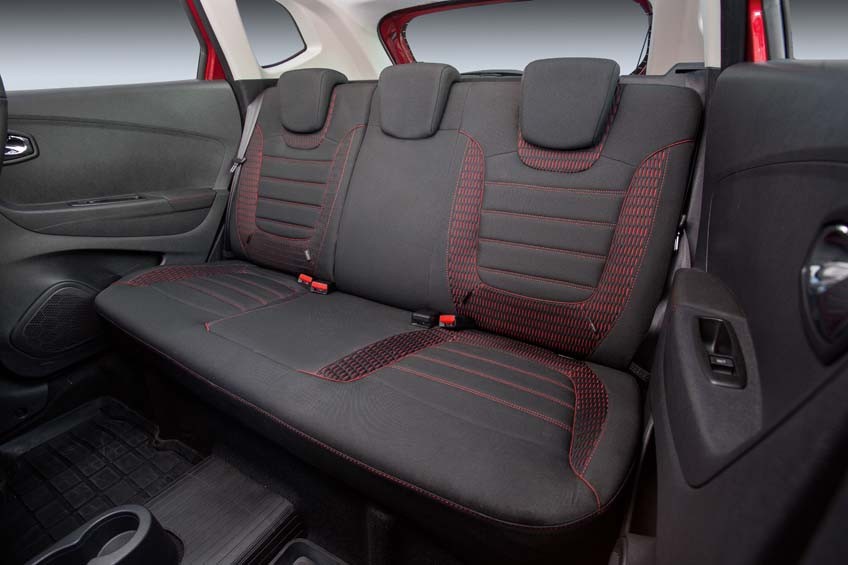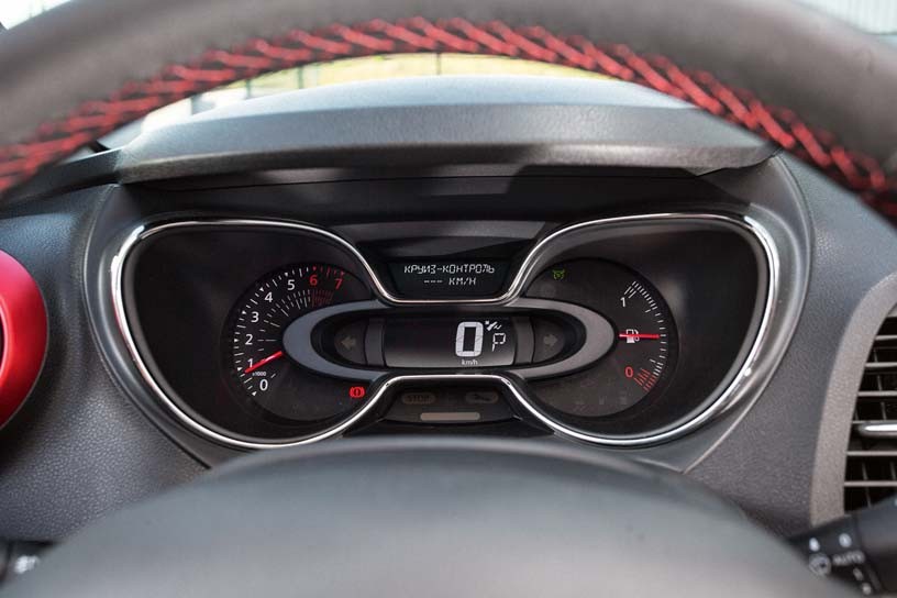 Автомобиль предлагается в том числе в эксклюзивном красном цвете кузова, с защитными накладками, контрастной – черной или бежевой – крышей, 17-дюймовыми черными дисками с красными колпачками. Красными же будут и окантовка экрана мультимедийной системы, накладка под рычагом КП, прострочка на руле и сиденьях. Все это отлично оживляет интерьер – стандартному цветовому оформлению салона не хватает как раз таких «изюминок».