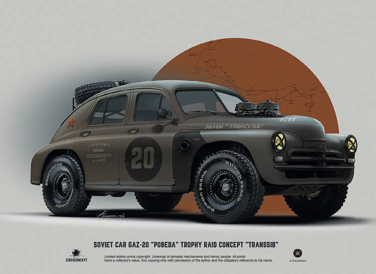Вообще, все мои фантастические задумки если не на сто, то на девяносто восемь процентов выполнены так, что при желании их можно изготовить, и это будет ездить. И, кстати, поступает немало предложений сделать машины по моим рисункам. Была интересная идея на базе «Победы» – один человек мне написал, что уже купил машину, чтобы воплотить мои фантазии в жизнь. Есть уже готовые машины, люди, которые их делали, писали, что вдохновлялись моими работами по мотивам «Секретного гаража».