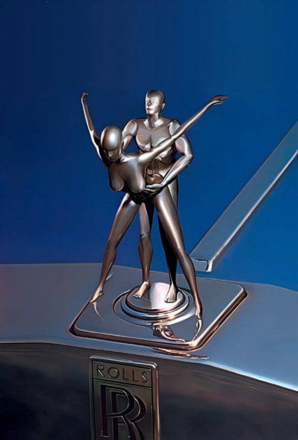 «АВТОПИЛОТОВСКОЕ» ПРОЧТЕНИЕ маскота компании Rolls-Royce – «Духа экстаза». Получилось несколько скабрезно, зато запоминалось. Позднее рижская компания Dartz сделала такой же в металле по заказу американского рэпера 50 Cent. Двойной «Дух экстаза», как и зажигательную свечу-помаду, сделал во второй половине 1990-х дизайнер Алексей Соловьев: на соседних полосах есть выдержка из его интервью, критикует художников-передвижников.