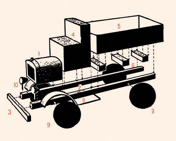 В последующие десять лет в большинстве изданий про бумажные игрушки автомобили отсутствовали, зато в книге Василия Андреевича Греченко «Игрушки из бумаги», увидевшей свет в 1936 году, рассказывалось, как сделать самые разные игрушечные автомобили из бумаги. Кстати, в книге уже не было готовых раскроек, а лишь объяснялись принципы создания бумажных машинок – как вырезать и склеить раму, кузов и капот. Все остальное отдавалось на усмотрение ребенка. В книге приводилось и описание участников конкурса игрушек-самоделок: трактор со «шпорами» на задних колесах, кабриолет с открывающимися дверками, грузовик-самосвал, автокран, экскаватор и пожарная машина, у которой выдвигалась лестница. Последнюю игрушку и признали лучшей на конкурсе.