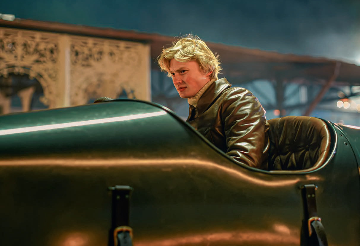 После дождя проселочную дорогу развезло, и минивэн Mercedes-Benz, на котором мы добирались до места, то и дело буксовал, а водитель опасливо смотрел на глубокие, грязные лужи. А до нас уже доносились звуки гонки. Среди специально построенных для фильма гоночных машин начала прошлого века есть и чемпион своего времени – Blitzen Benz, автомобиль, разработанный в 1909 году самим Карлом Бенцем и установивший в 1911 году рекорд скорости того времени: 228 км/ч. Реплики лихо проезжают перед кинокамерами, из-под колес летят грязные брызги. Публика ахает – дамы в длинных пальто и шляпах, их кавалеры в пальто покороче и котелках. Среди них выделяется мужчина в грубом свитере и кожаной куртке. Он кричит проносящейся мимо машине: «Обороты! Сбавь обороты!» Не сразу узнаешь в этом светловолосом человеке Юру Борисова. В «Битве моторов» он играет инженера Дмитрия Бондарева.