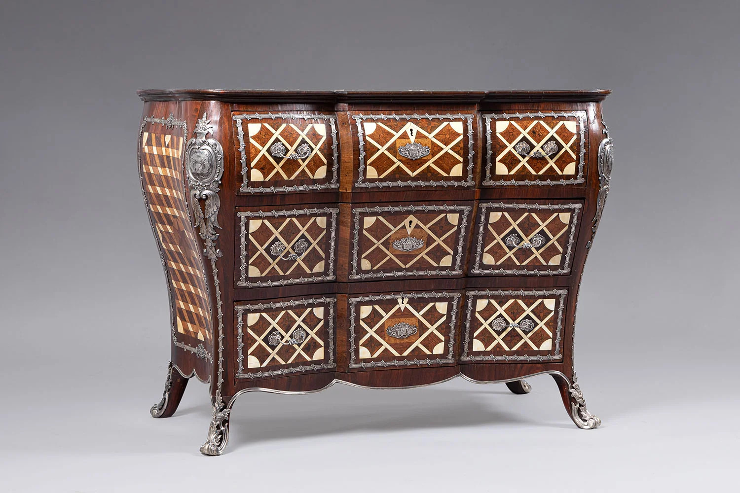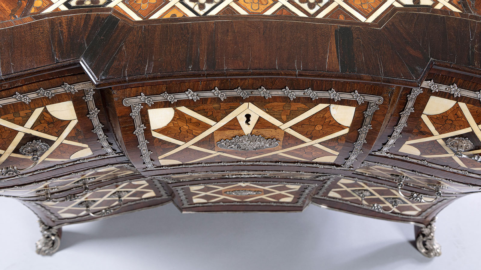В следующий раз комод из Пратолино вышел в свет на торгах Druout в 2011 году, затем на Christie’s в 2015-м и снова на Druout в 2021 году, где его с третьей попытки за €325 000 купил петербургский антиквар Михаил Суслов. По итальянскому комоду в Эрмитаже отслеживали провенанс петербургского и восстанавливали его внешний вид. Например, у итальянца — ножки рокайльной формы в серебряных башмачках, а эрмитажный комод стоял на четырех кубиках.