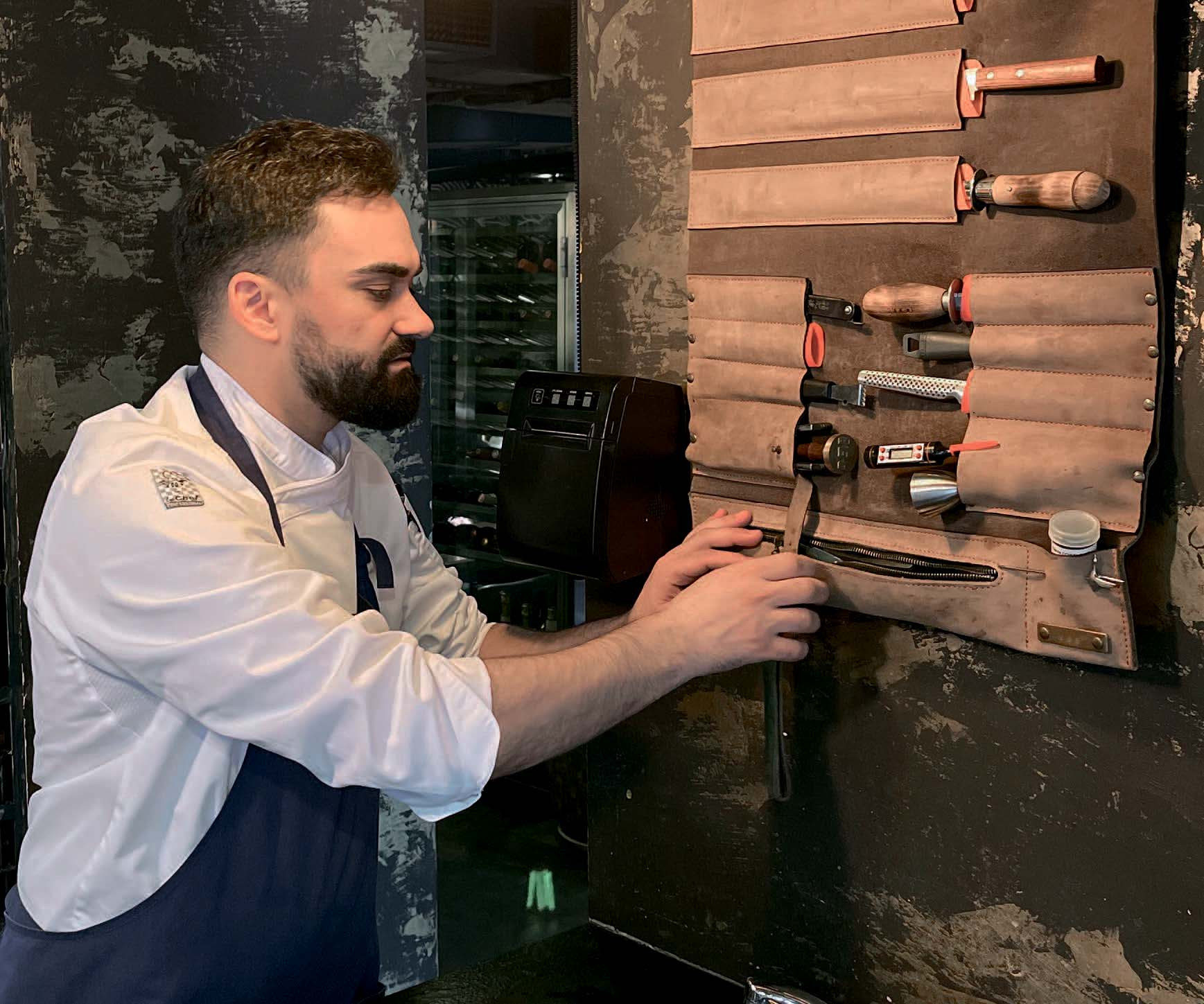 Мое пристрастие к скруткам появилось, когда я начал подготовку к конкурсу San Pellegrino Young Chef 2015. Мне было нужно, чтобы все мои ножи и кухонные принадлежности были под рукой и их можно было легко перенести на новую площадку. Словом, понадобилась скрутка, и я начал ее искать.