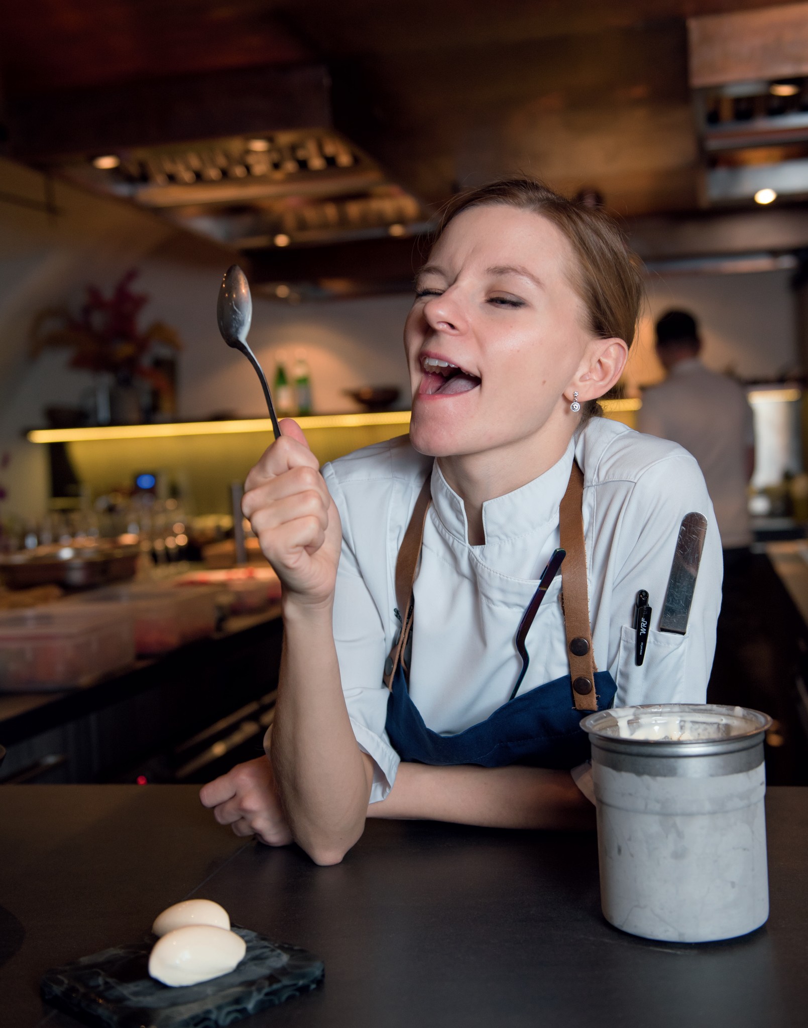 С третьей попытки. Меня выбрал Владимир Мухин, но проработала тут недолго, всего четыре месяца, потом пришлось уйти — как раз из-за участия в Bocuse d’Or. Сначала пыталась совмещать работу и подготовку, но быстро поняла, что это нереально. После победы в конкурсе, когда меня выбрали лучшим ассистентом шефа, друзья стали советовать: иди в шеф-кондитеры — это твое. Рискнула и устроилась в ресторан французской кухни с шефом-французом во главе. Сделала десерты, провела успешную дегустацию и… быстро заскучала. Тянуло обратно в «Кролик». И я вернулась кондитером, начав все с нуля. Через три месяца меня поставили су-шефом, а через полгода стала шеф-кондитером. Ничего такого я, конечно, не планировала, поэтому был шок — не понимала, как вообще такое возможно. Появился жуткий страх, трепет, меня прям колотило — такая ответственность, когда ресторан входит в сотню лучших в мире. Стремительно начала учиться — книги, журналы, ролики на YouTube… Сутками не спала. Потом была череда взлетов и падений, но все в итоге получилось.
