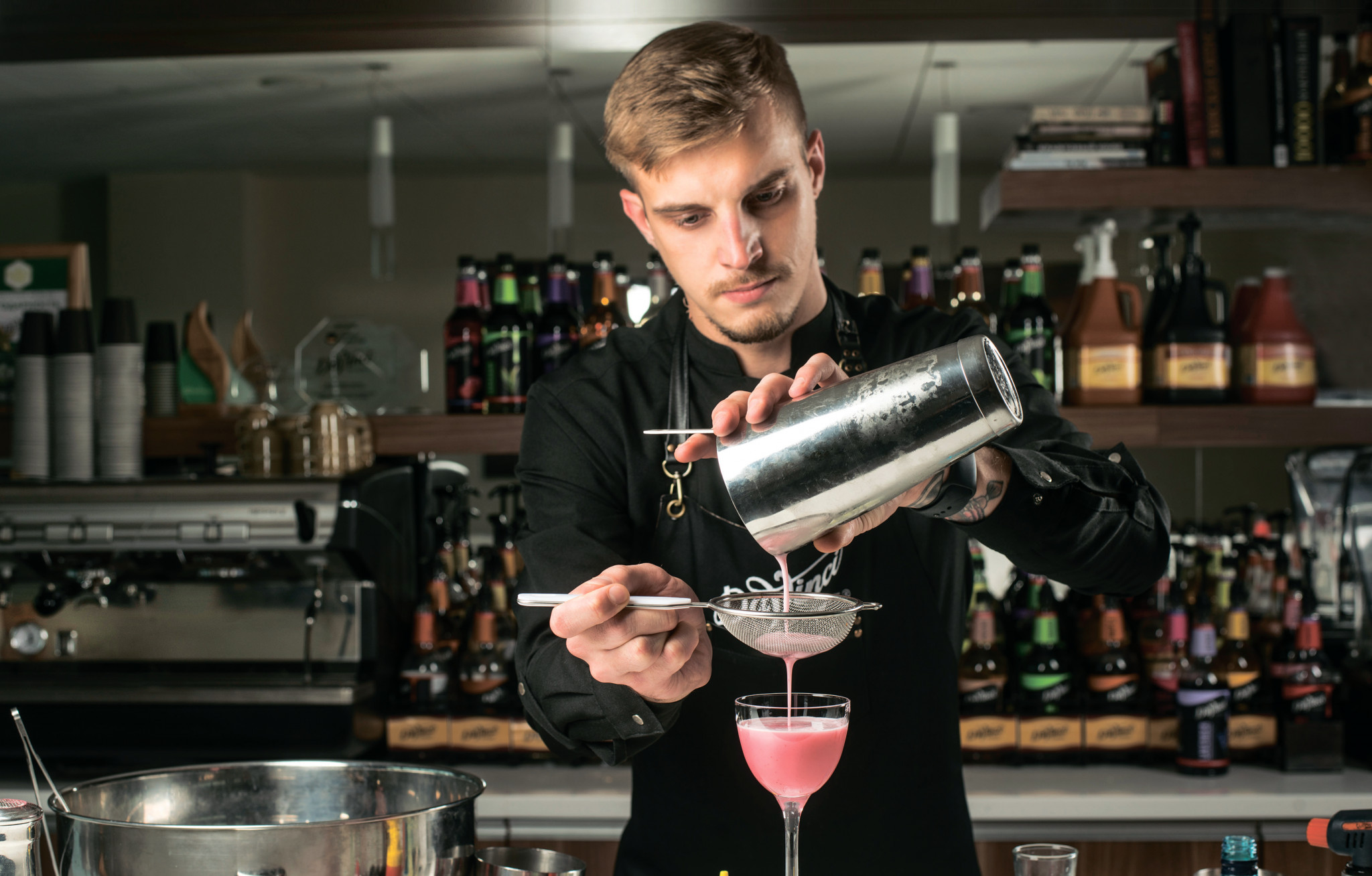 А.В. При создании напитков я руководствуюсь следующими параметрами. Первый — дать крутой вкус. Второй — сделать простую рецептуру, чтобы как можно больше людей могли приготовить напиток (усложнять просто, сложно упрощать). Третий — удивить оригинальным сочетанием, создать bar эмоцию (очень люблю брать необычные ингредиенты, будь то паприка или томаты в собственном соку). Четвертый — ингредиенты должны быть качественными и доступными. В случае с сиропами DaVinci — идеальное совпадение. Что касается трендов, все работает на подсознательном уровне. Они всегда в голове, ты автоматически ими руководствуешься при выборе ингредиентов, технологии приготовления, бокала.
