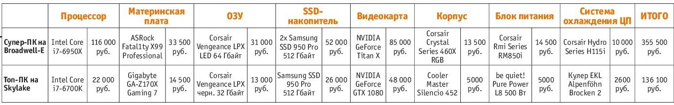 В качестве «сердца» нашего супер-ПК мы выбрали самый мощный процессор Intel, который предлагается для домашних пользователей, — Core i7-6950X. Для него требуется материнская плата с разъемом 2011-V3 и чипсетом Intel X99. Мы выбрали модель ASRock X99 Gaming i7 с двумя слотами M.2 для SSD-накопителей. В качестве видеокарты была выбрана наиболее быстрая на сегодняшний момент модель NVIDIA GeForce Titan X на базе архитектуры Pascal, а в качестве M.2-дисков — пара новеньких Samsung SSD 960 Pro.