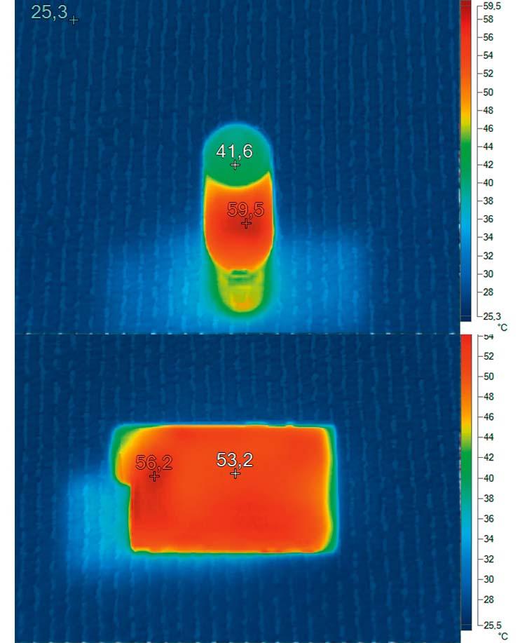 Помимо повышенного аппетита к памяти были обнаружены еще два «побочных эффекта». Во-первых, маленькая продолжительность времени автономной работы, которая составляет приблизительно один час — покупка дополнительного аккумулятора, таким образом, напрашивается сама собой. Во-вторых, Sony FDR-X1000V нагревается почти до 60 °C. Уже через несколько минут записи в руках появляются неприятные ощущения. Примерно через 49 минут съемки в UHD-разрешении на монохромном статус-экране вспыхивает предупреждение — «Перегрев».
