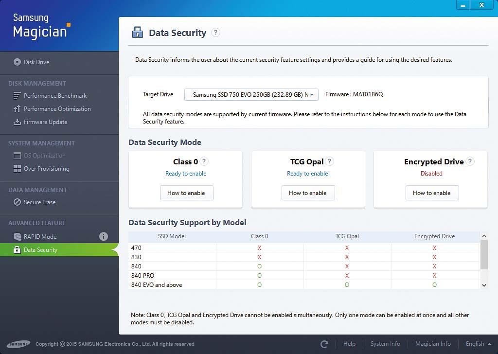 Зашифровать современные жесткие диски проще, чем можно подумать, поскольку они предлагают собственную методику кодирования. Для этого в них используется Opal SSC (Opal Security Subsystem Class). Данный стандарт позволяет шифровать диск напрямую на контроллере носителя. Таким образом, операционная система остается незатронутой. Чтобы узнать, поддерживает ли ваш диск технологию Opal, посмотрите техническое описание продукта на сайте производителя. Там же вы найдете инструменты для активации этой функции. В случае с Samsung, к примеру, это программа Magician. После активации жесткий диск перед запуском ОС попросит вас ввести заданный пароль.