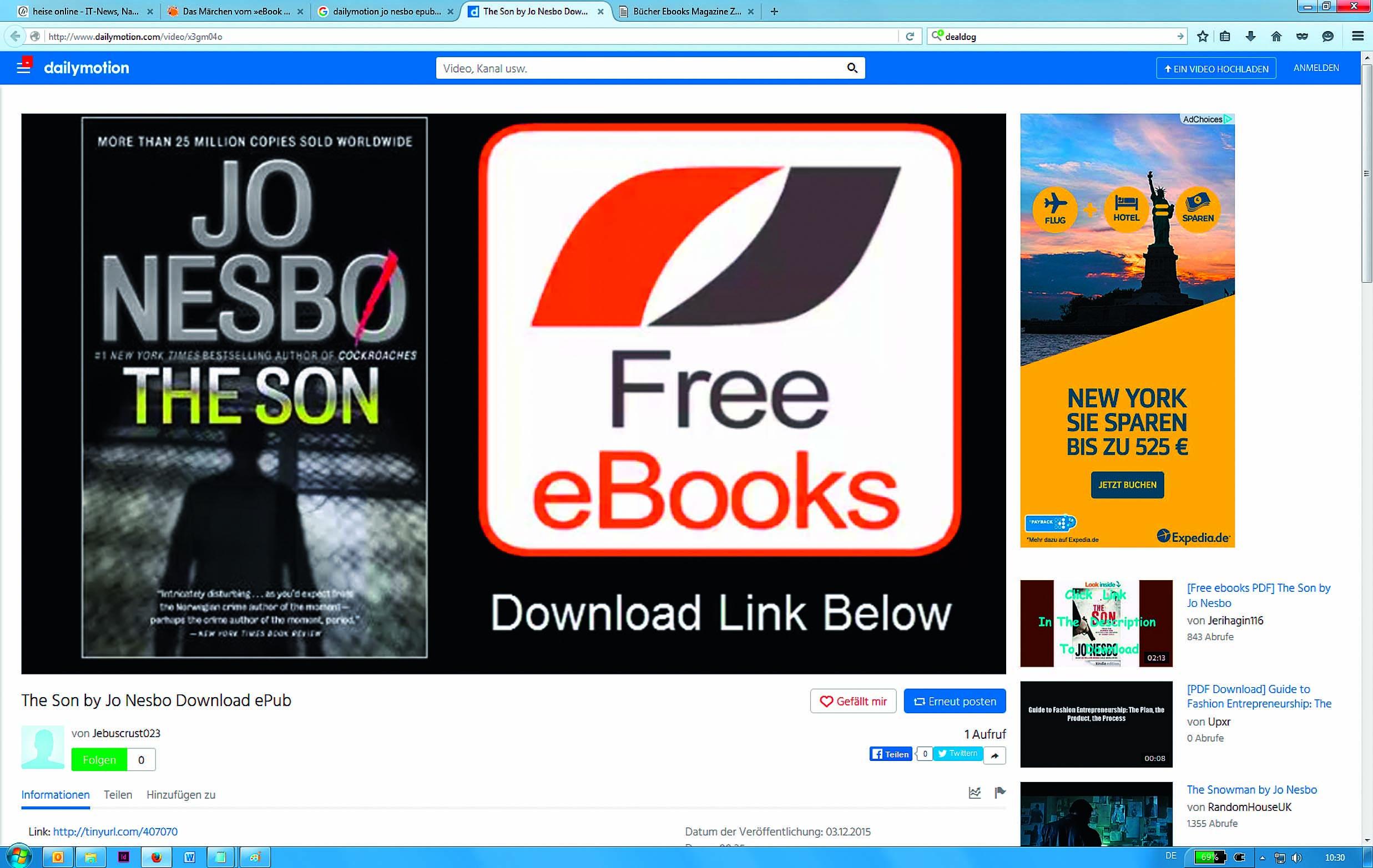 Ссылки на бесплатные электронные книги можно обнаружить даже на видеопорталах, например Dailymotion. К файлу ведет короткий адрес.