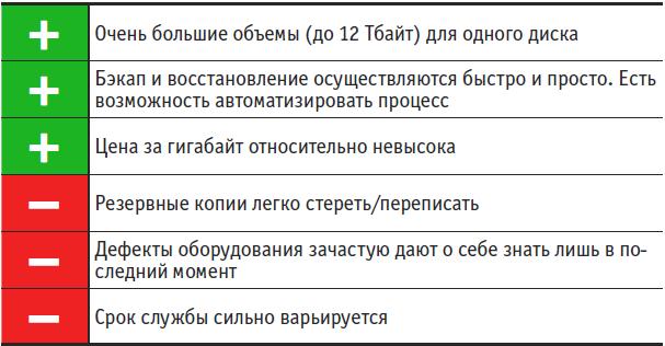 При сегодняшних массивах данных ни один бэкап не может проходить без участия жестких дисков, поскольку они подходят для любого из трех этапов архивирования. Такие носители предлагают большие объемы за небольшие деньги, позволяют осуществлять быстрое архивирование и восстановление. Однако не стоит забывать про существенный недостаток жестких дисков: в среднем они служат несколько лет, однако отдельные экземпляры могут выбыть из строя уже через несколько дней и недель с начала эксплуатации без каких-либо предупреждений. Согласно статистике, собранной в вычислительном центре облачного провайдера Backblaze (goo.gl/VSmzwN), в связи с возможными ошибками при изготовлении необходимо принимать во внимание, что абсолютно новые HDD столь же сильно подвержены риску выхода из строя, как и диски после трехлетней эксплуатации в качестве носителя бэкапов. Последний срок соответствует примерно пяти годам стандартного использования, когда диск пусть и реже отсоединяется и присоединяется, однако находится под дополнительной нагрузкой из-за частого включения и выключения компьютера в постоянном режиме работы.