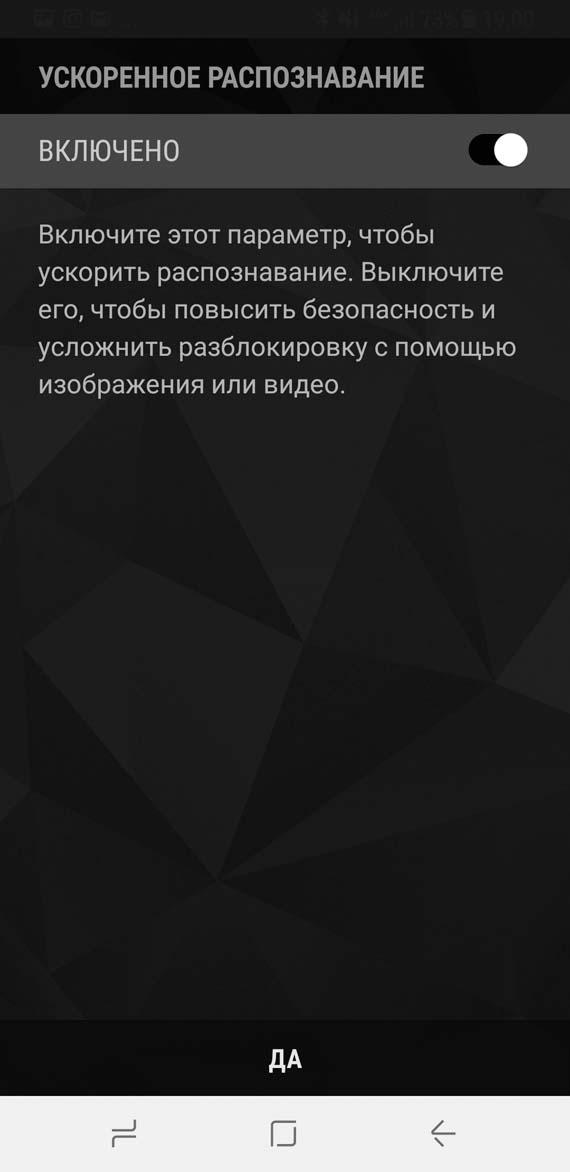Впрочем, компания Samsung уже отреагировала на первые взломы. В одном из заявлений не рекомендуется использовать сканирование лица в качестве единственного ограничителя доступа к смартфону. Чуть позже корпорация дополнительно представила обновление ПО, предлагающее новую возможность распознавания лиц. В настройках вы найдете пункт «Быстрое распознавание». Эта опция задействована по умолчанию, однако ее необходимо отключить. После этого станет гораздо сложнее обмануть сканер одним лишь селфи, но придется смириться с потерей комфорта из-за увеличения времени идентификации. Нам во время тестового испытания не удалось обхитрить камеру с установленным обновлением. Однако в Интернете уже появились советы, как обойти и эту меру защиты. В Samsung теперь перестраховываются и указывают на то, что распознавание лиц не подходит в качестве способа аутентификации для конфиденциальных сервисов.