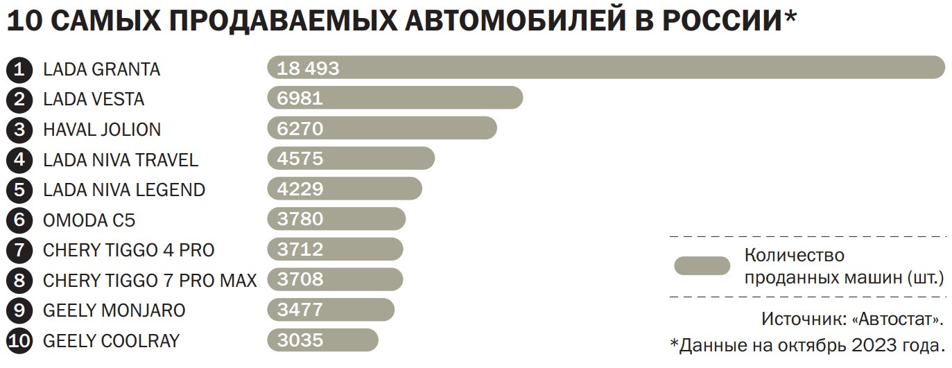 Главная интрига на российском автомобильном рынке в уходящем году — это противостояние АвтоВАЗа с китайскими автоконцернами. К концу года ведущий российский производитель выруливает из сложной ситуации с санкционным давлением и жмет на педаль акселератора: по итогам октября Lada показала внушительные результаты продаж в России в 40,9 тыс. машин, что стало рекордом за десять лет. Бестселлерами российского флагмана остаются такие модели, как Lada Granta (ее цена начинается с 700 тыс. руб., что является очень привлекательным предложением в текущих рыночных реалиях), а также уже более современная и вместительная модель Vesta (ценой от 1,2 млн руб.). Находит своего покупателя и «вечно молодая» серия машин Niva, которая находится в производстве более 40 лет, это — Niva Legend (ценой от 830 тыс. руб.) и Niva Travel (от 1,2 млн руб.). По данным «Автостата», в общей сложности АвтоВАЗ сейчас держит 33% рынка. «Популярность автомобилей бренда Lada обусловлена несколькими факторами,— размышляет Илья Федорченко, генеральный директор „СберАвто“.— Во-первых, модели этой марки являются самыми доступными как на первичном, так и на вторичном рынке. Во-вторых, слаба на текущий момент конкуренция в B-классе, традиционно очень востребованном россиянами. И в-третьих, легкий доступ к оригинальным запчастям и комплектующим, а также возможность бюджетного обслуживания авто — немаловажный фактор в существующих условиях».