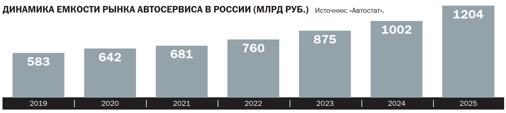 Во многом именно из-за роста цен объемы рынка автомобильного технического обслуживания демонстрируют рекордные показатели. Аналитики «Автостата» подсчитали, что в 2025 году рынок сервисных услуг для легковых машин в России достиг рекордных 1,204 трлн руб. Это на 20% больше, чем в 2024 году, и почти вдвое превышает показатели пятилетней давности: в 2020 году объем рынка оценивался в 642 млрд руб.