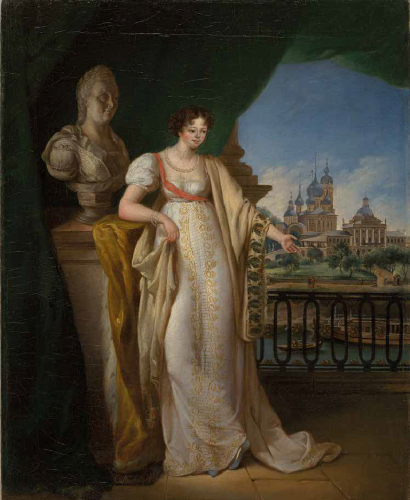 Портрет великой княгини Екатерины Павловны был создан во время пребывания любимой сестры императора Александра I в Твери. На втором плане картины помещено изображение центральной части города начала XIX века.