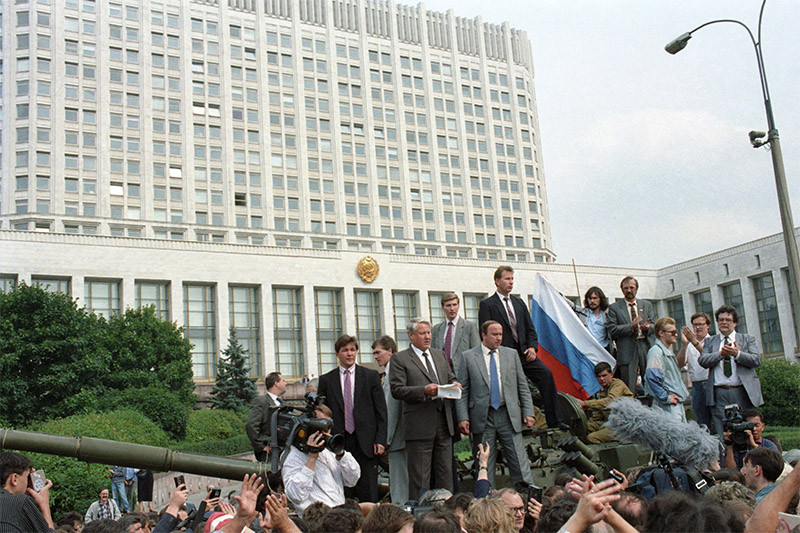 Группа высокопоставленных советских должностных лиц провозгласила создание Государственного комитета по чрезвычайному положению (ГКЧП), чтобы предотвратить намечавшееся на 20 августа 1991 года подписание Союзного договора, упразднявшего СССР и образовывавшего Союз Суверенных Государств, ССГ). Президент СССР Михаил Горбачёв был изолирован в Крыму, где находился на отдыхе. Ельцин, 12 июня избранный президентом РСФСР, возглавил сопротивление ГКЧП.