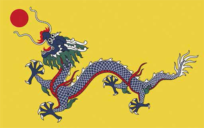 К XIX веку знамя с драконом европейцы могли видеть уже чаще: торговые и дипломатические контакты стали более постоянными и продолжительными, да к тому же началась эпоха Опиумных войн, и после поражения Китай был вынужден пустить на свою территорию иностранцев. В 1872 году Китай принял государственный флаг: треугольное желтое полотнище с драконом. Желтый цвет символизировал маньчжурскую династию, дракон — самого императора. До появления четырехугольного флага оставалось совсем недолго.