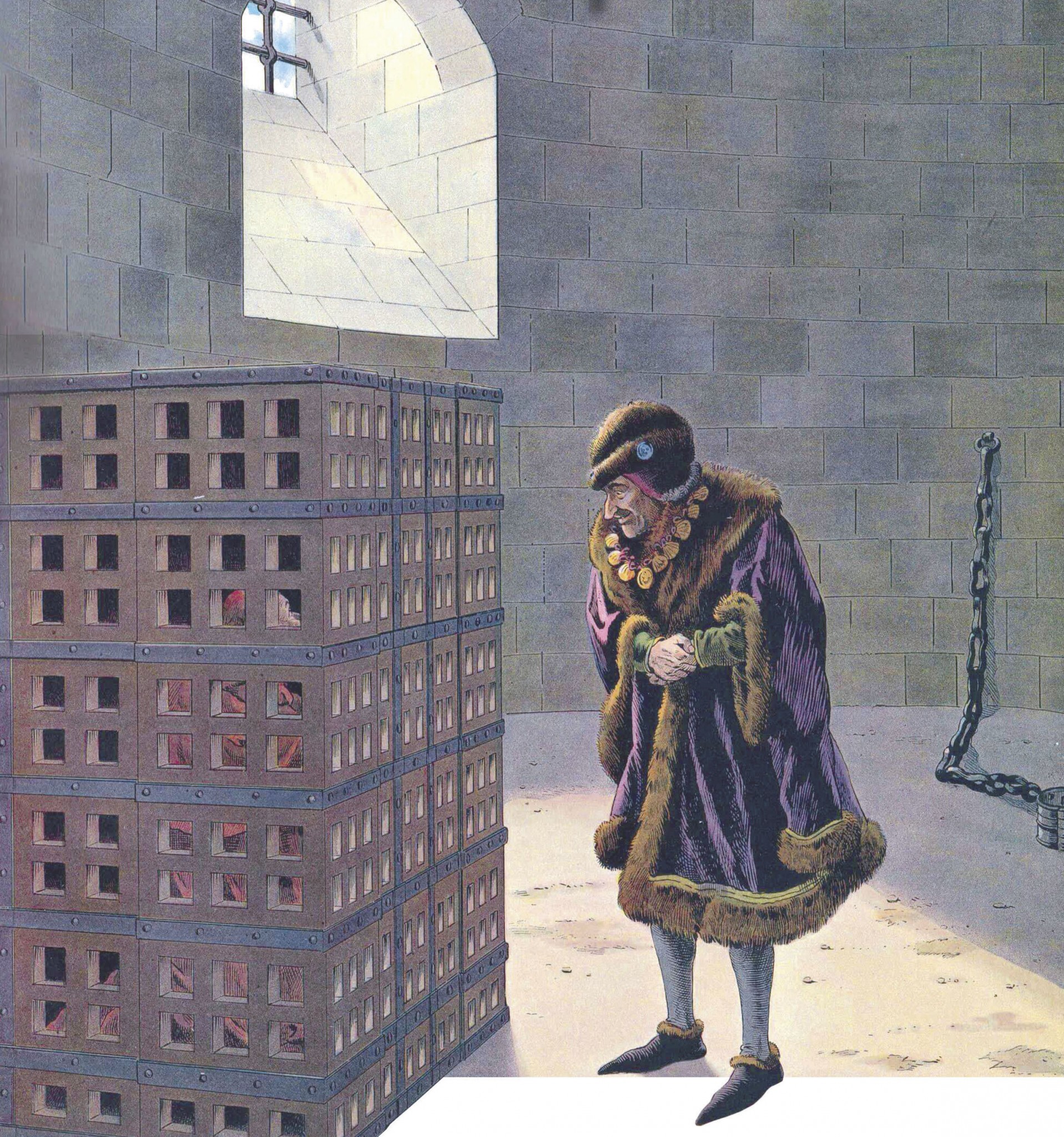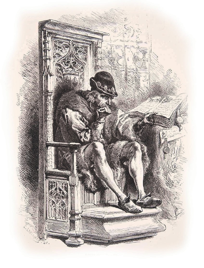 Людовик XI у клетки, в которой находится кардинал Жан Ла Балю. Шарль Руке, книжная иллюстрация, 1905 год